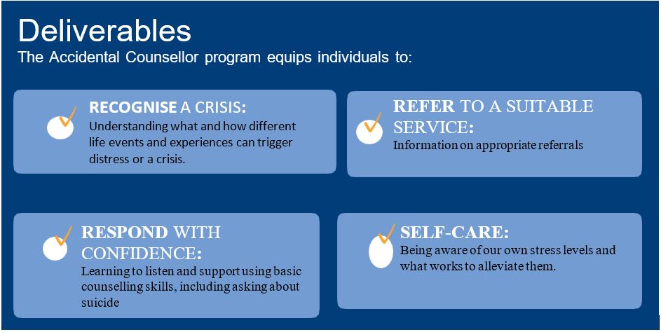 Lifeline Northern Beaches’ Accidental Counsellor training can once again be attended as face-to-face sessions (or Zoom). Check out the dates for upcoming workshops to book your spot by clicking HERE.